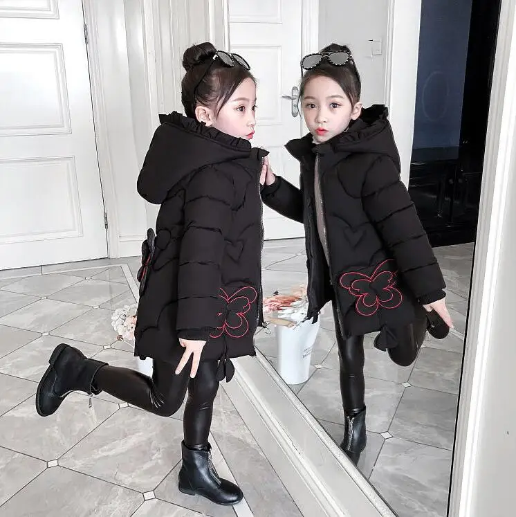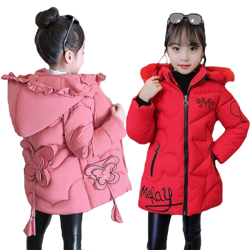 Плотная теплая зимняя куртка большого размера для девочек-подростков, плотная длинная стильная ветровка с капюшоном, пальто для девочек, Детский Рождественский подарок
