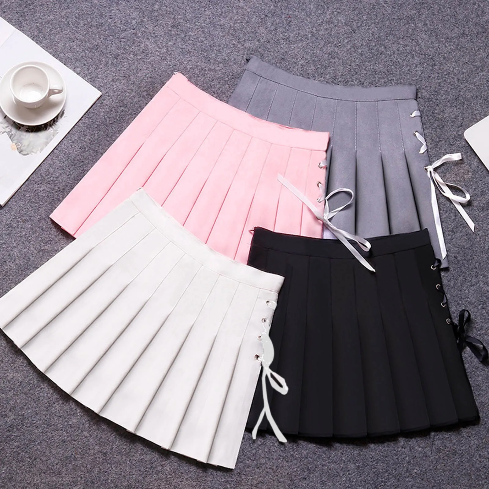 Мини-Юбка Женская плиссированная трапециевидная, модная однотонная короткая Юбка с естественной талией, в Корейском стиле, в стиле Харадзюку