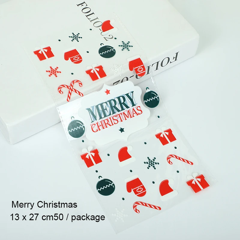 50 шт., прозрачные подарочные пакеты с Санта-Клаусом, оленем