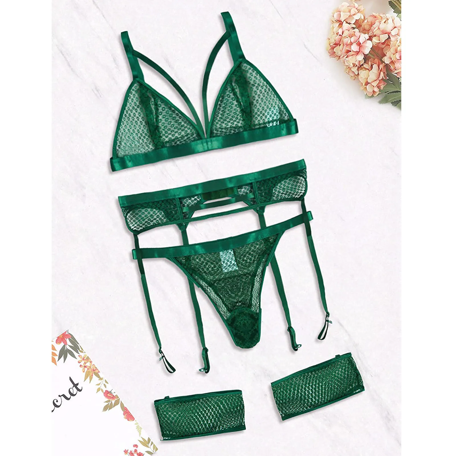 3 шт., сексуальный кружевной комплект нижнего белья, сетчатый перспективный бюстгальтер, стринги, пояс, нижнее белье, Женский комплект, эротическое открытое нижнее белье, сексуальное ночное белье