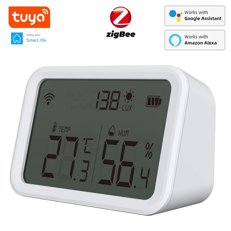 Датчик влажности и температуры Tuya Wi-Fi Zigbee, детектор люкс с Ж...