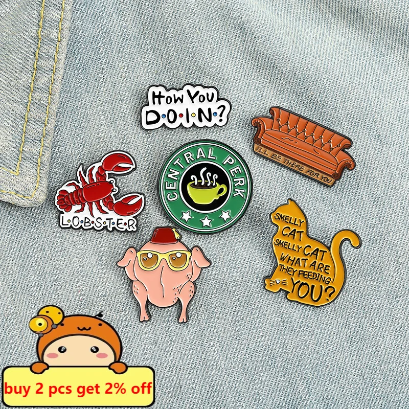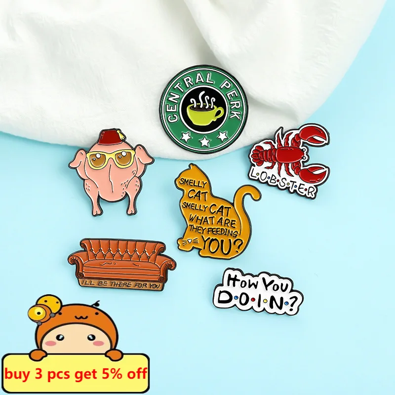 Эмалированные Броши с цитатой, значки ТВ-шоу, кошачья еда, кофе, Воротник для женщин, мужчин, аксессуары для шляпы, BFF, ювелирные изделия для детей, семьи