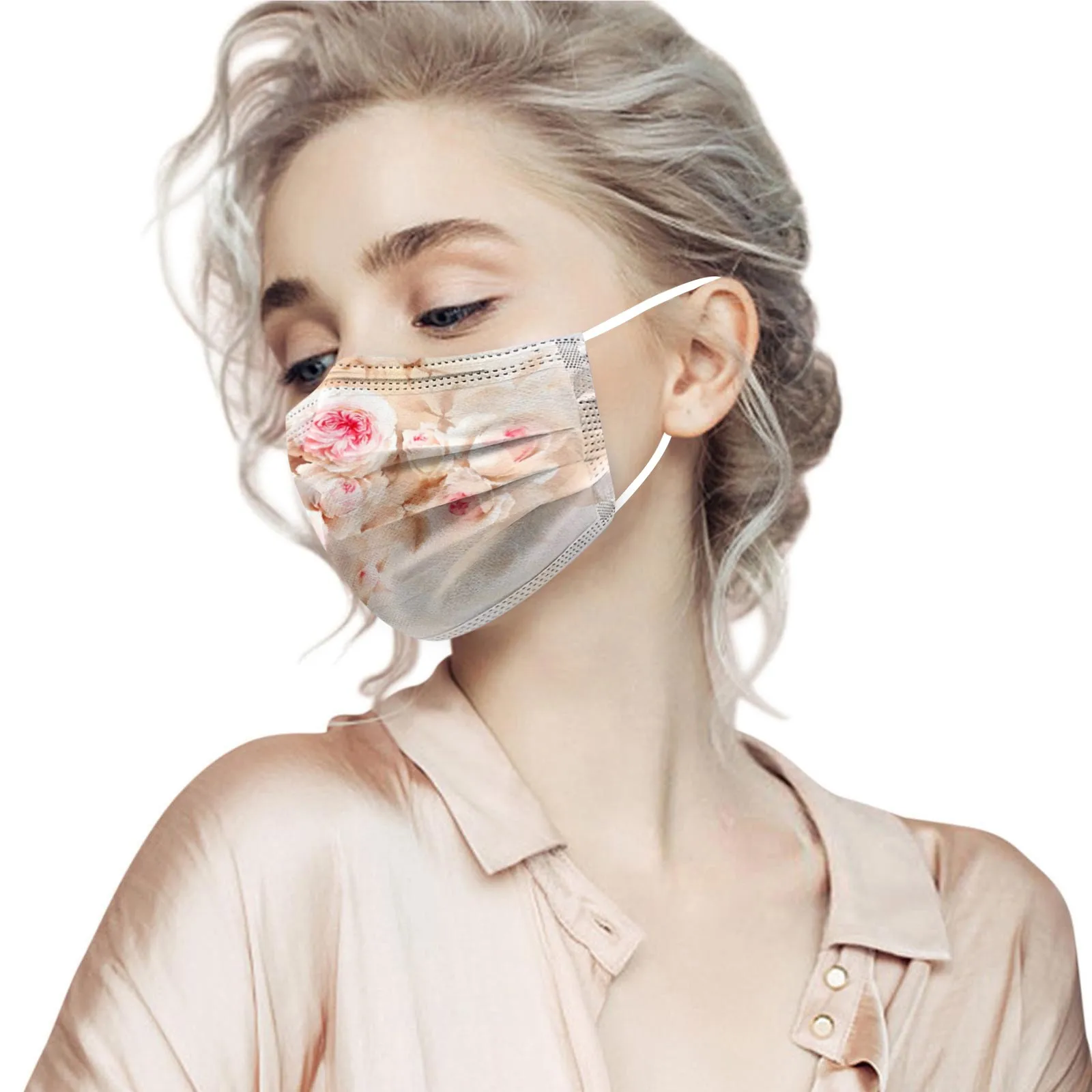 Маска для лица одноразовая, трехслойная, с цветочным принтом, для взрослых, 1050 шт.