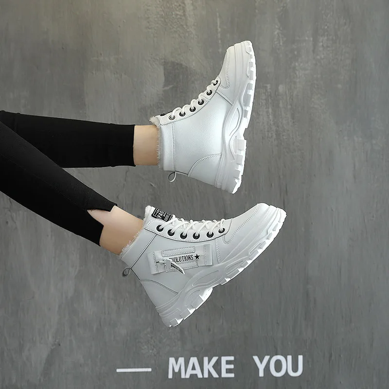 Женские ботинки, зимние модные кроссовки на массивной платформе, повседневные ботинки, модные женские ботинки, теплая плюшевая женская обувь
