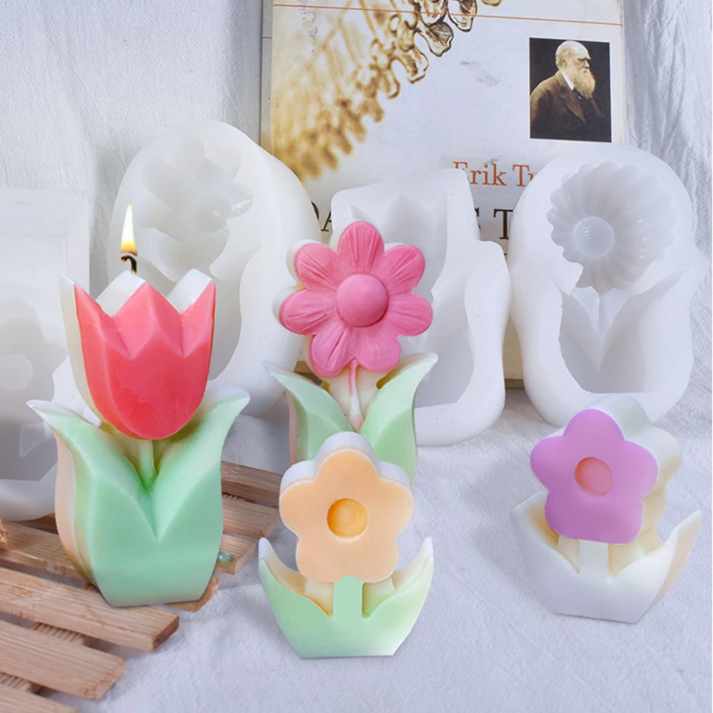 3D Свеча цветок розы силиконовая форма штукатурка Смола форма гипсовый цилиндр форма сделай сам рукоделие искусственное украшение для дома