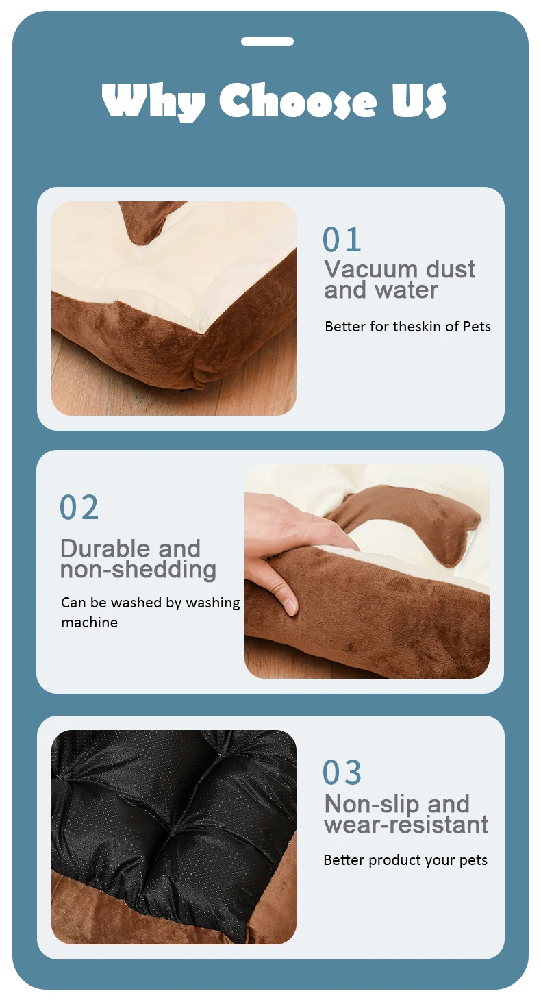 1. Этот коврик для домашних животных имеет Вельвет Внутри, он будет держать вашу собаку/кошку в тепле и комфорте.2. Этот питомник изготовлен из высококачественного материала ткани Оксфорд, он водонепроницаемый и легко чистится.3. Этот коврик для домашних животных имеет хорошую воздухопроницаемость, антибактериальный и приятный для кожи.4. Все эти кровати для собак полностью стираются в машине.5. Если у вас есть какие-либо вопросы или предложения, пожалуйста, свяжитесь с нами, мы сделаем все возможное, чтобы помочь вам