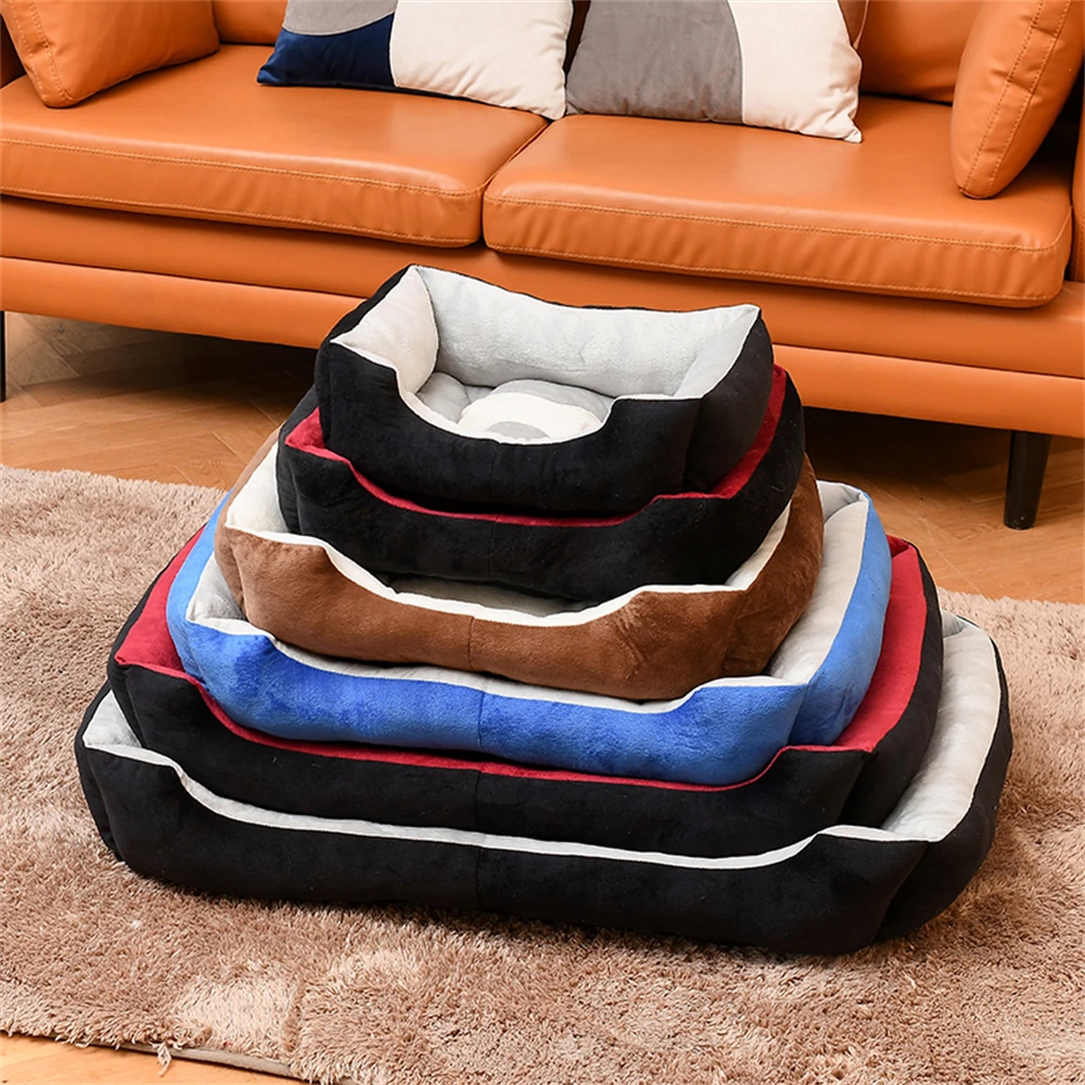 Лежанки для собак, кошек, домик, зимний теплый диван для домашних животных с подушкой, плюшевый коврик, мягкое флисовое гнездо, водонепроницаемый лежак, моющиеся корзины для собак