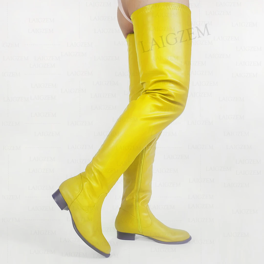 LAIGZEM женские ботфорты Высота платформы по колено сапоги с боково...