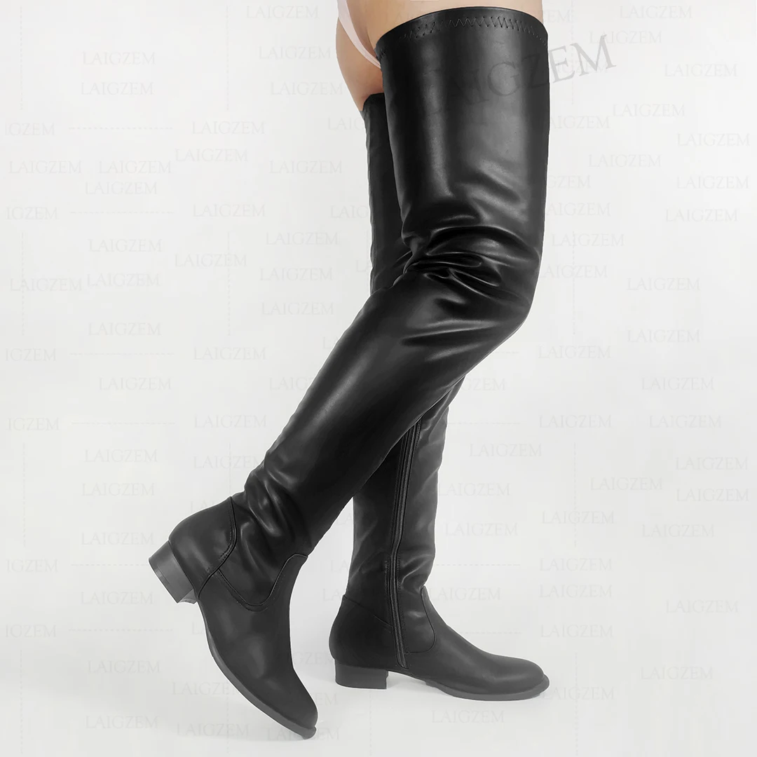 Женские сапоги из искусственной кожи; Высокие сапоги до бедра; Женс...
