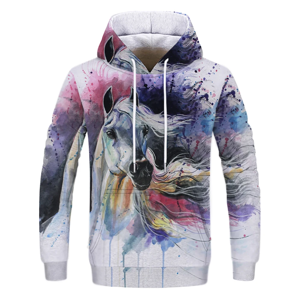 Толстовка мужская с 3D-принтом красивая лошадь, Свитшот унисекс, ул...