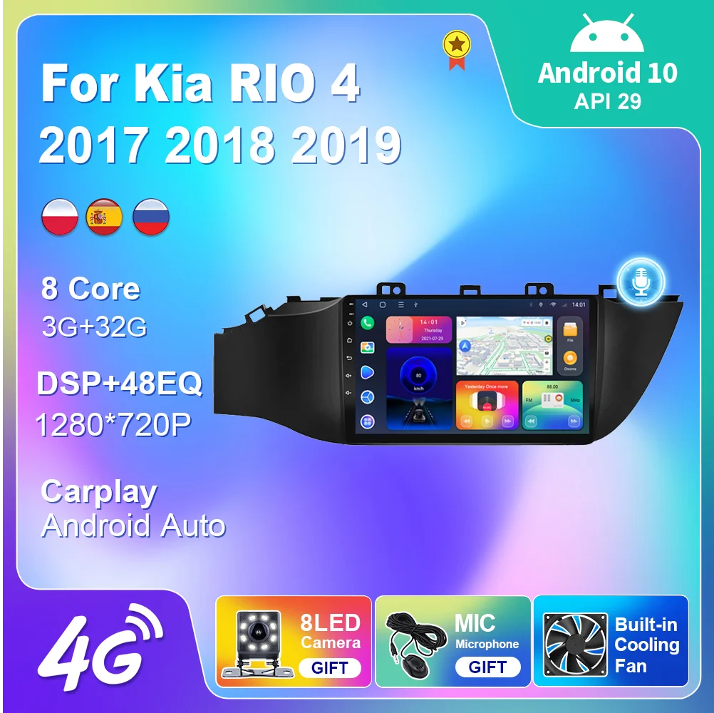 Android 10 авто для Kia RIO 4 2017 2018 2019 мультимедийный плеер Carplay аудио для автомобилей Автомагнитола стерео автомобильное Авторадио 4g