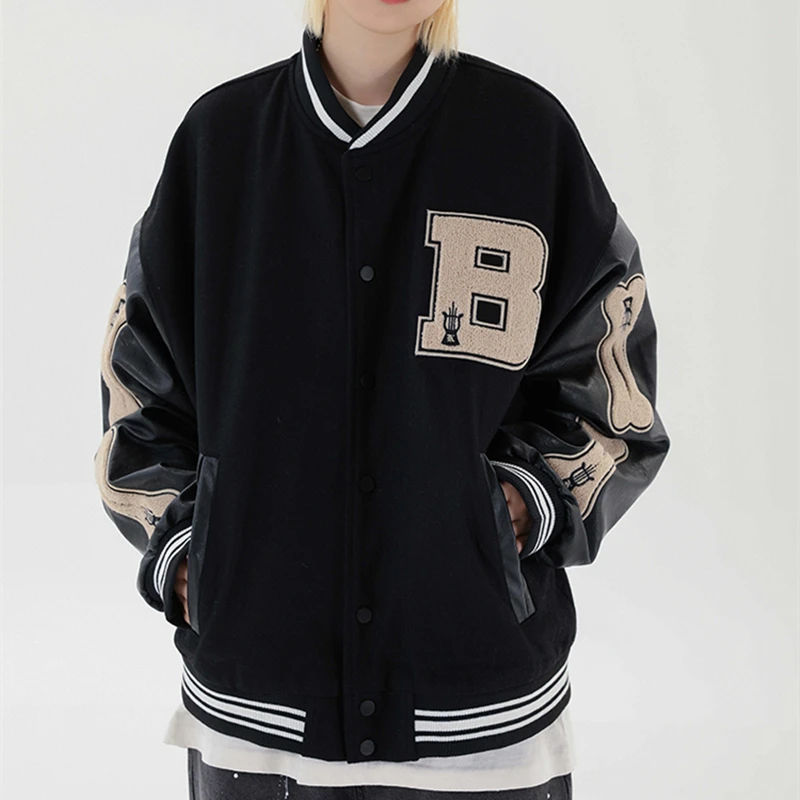 Куртка бейсбольная в стиле хип-хоп, черная куртка-бомбер в стиле пэчворк с пушистыми вставками, винтажная куртка унисекс с вышивкой