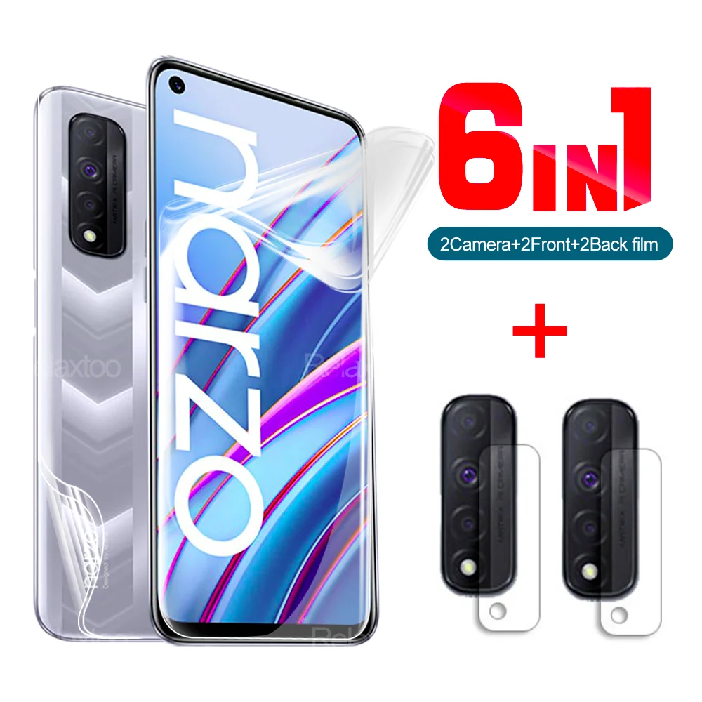 6 в 1 Гидрогелевая пленка с полным покрытием, передняя + задняя + камера объектива для Oppo Realme Narzo 30A 30 4Gзеркальная защитная пленка для экрана