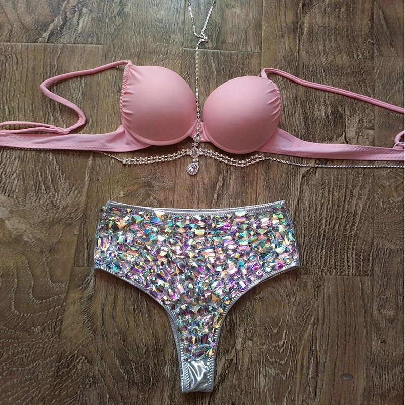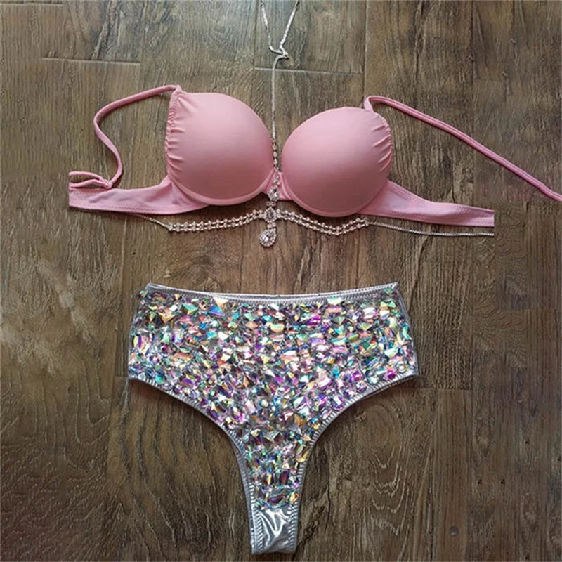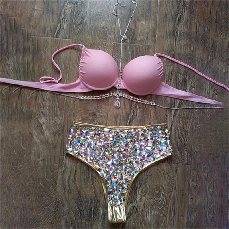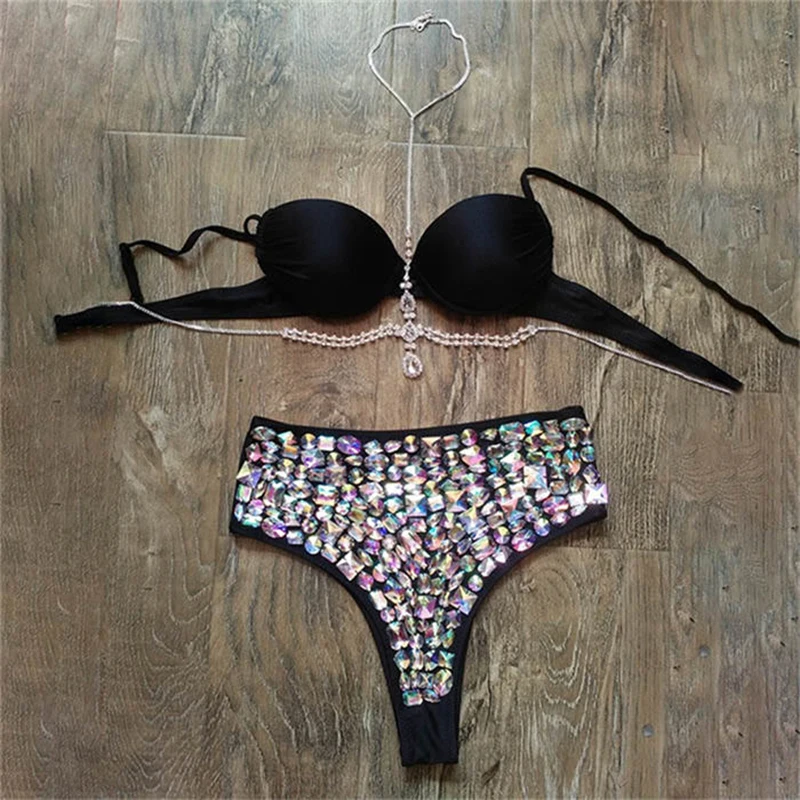 Комплект бикини Bling Стразы, женский сексуальный бюстгальтер с лямкой на шее, цепочка для тела, костюмы для купания, летний пляжный купальник, танкини icon star icon star icon star icon star icon star