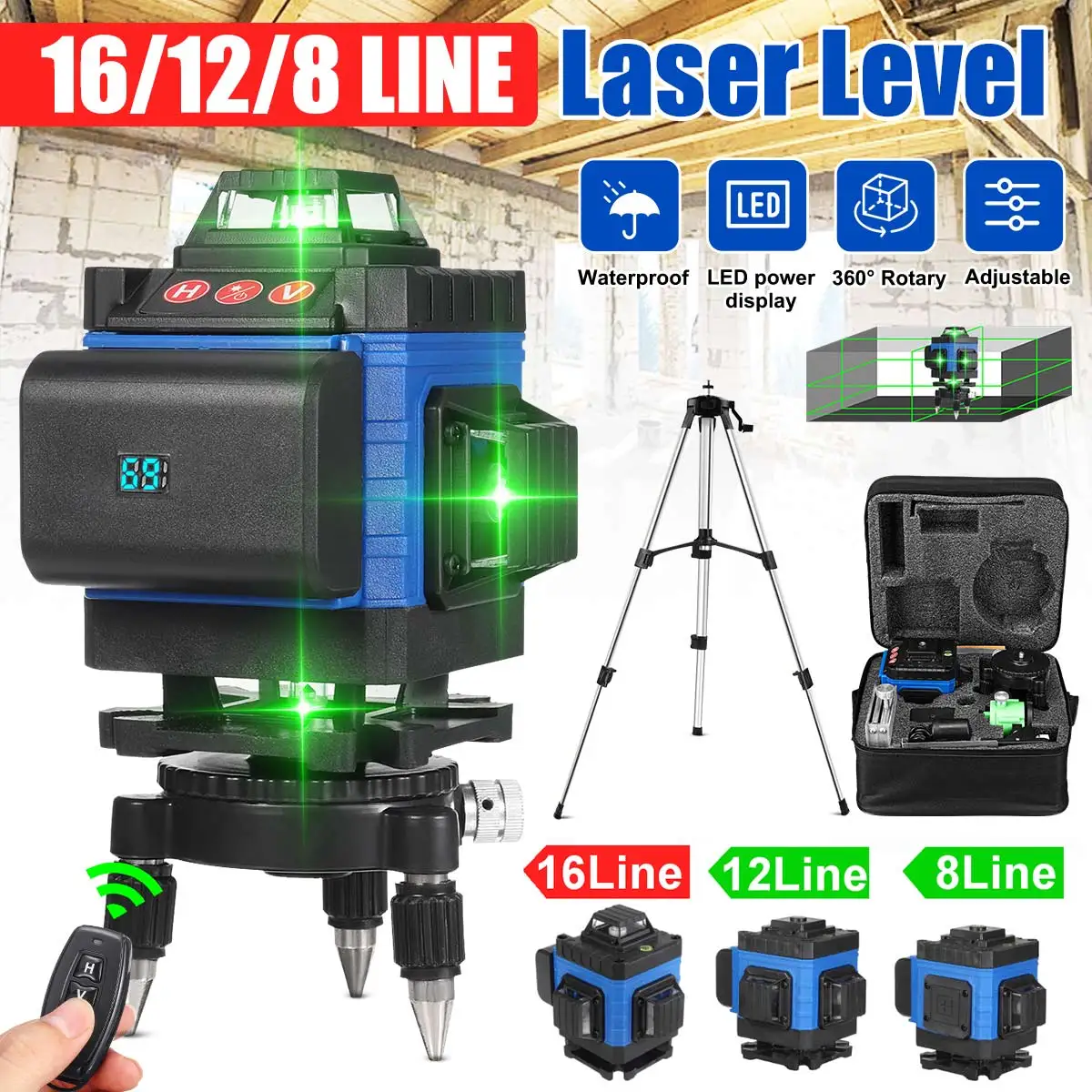 16/12/8 линия 360 ° Горизонтальный Вертикальный крест 4D зеленый светильник лазерный уровень самонивелирующийся супер мощный лазерный луч