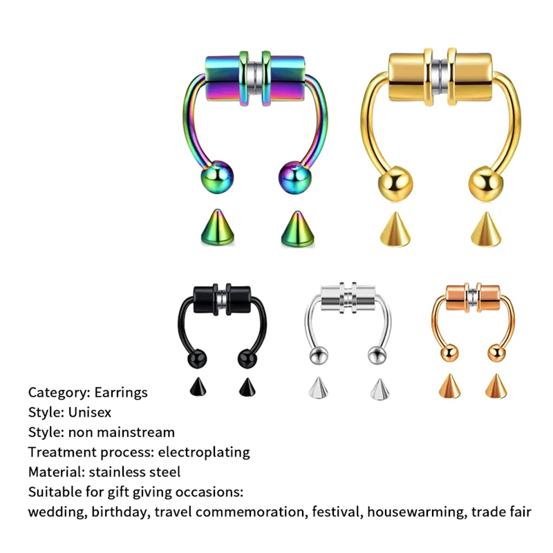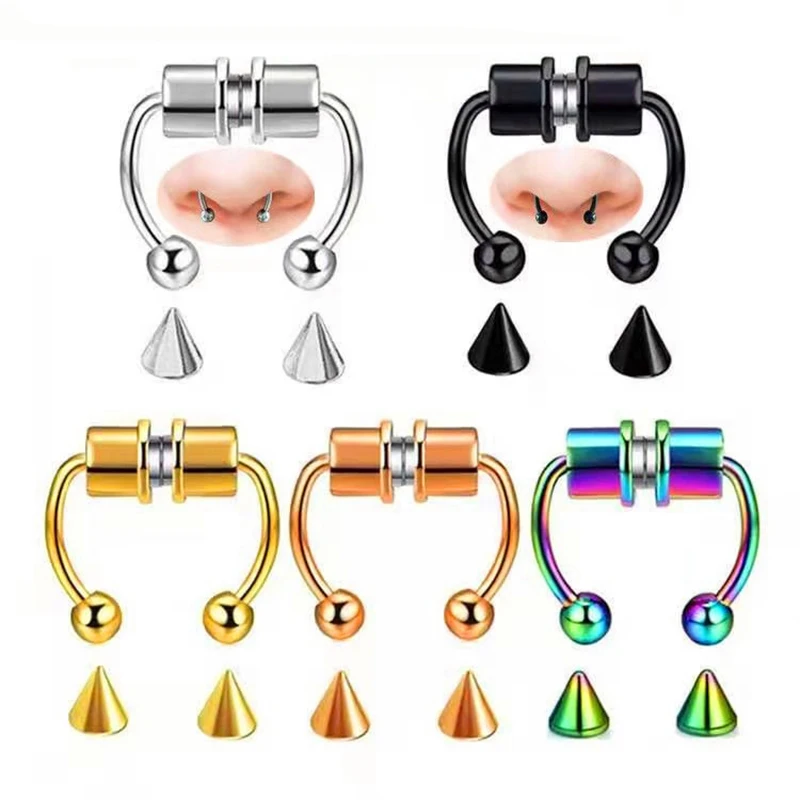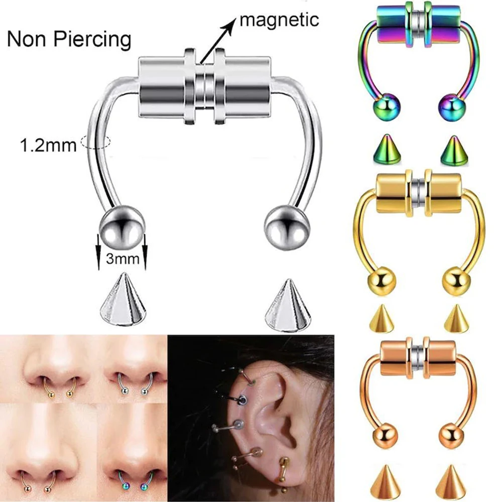 Кольцо в носу нового стиля, можно использовать повторно, сплав, накладные магниты из нержавеющей стали, магнит для носа, гот, поддельные пирсинг, украшения для тела