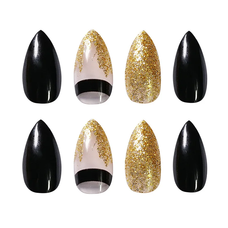 GAM-BELLE накладные ногти в форме миндаля черные золотые блестки фо...