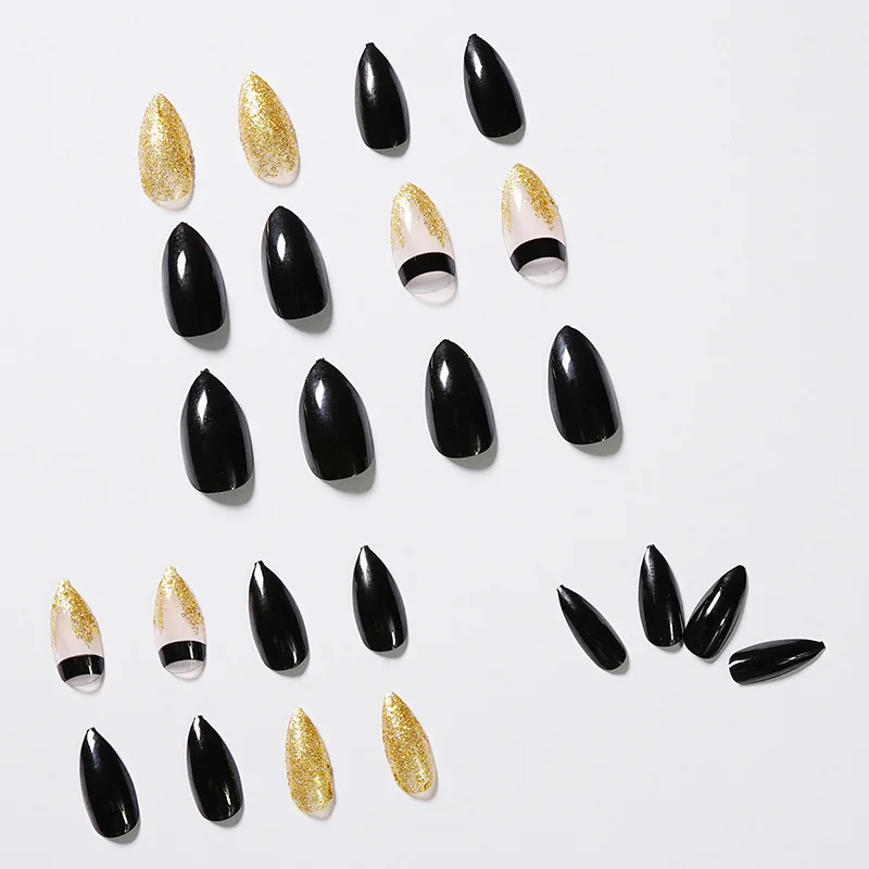 24 шт. черный золотой порошок наконечник Съемная одежда готовая продукция Маникюр накладные ногти патч CIN6 899