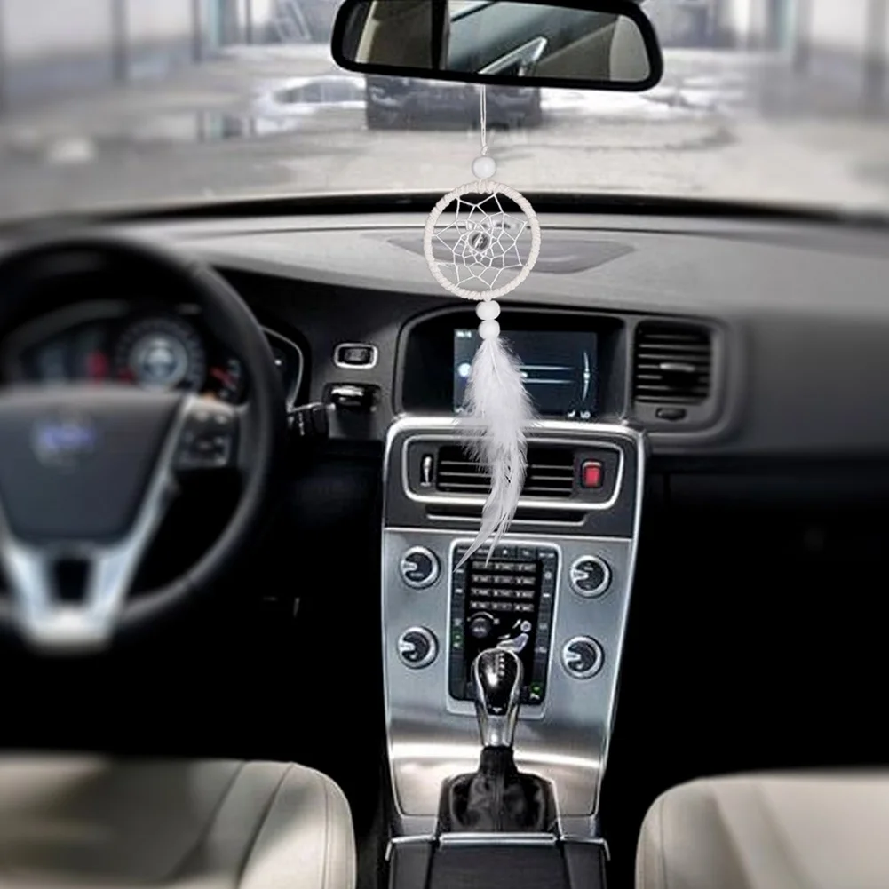 12 шт. Ловец снов, автомобильный педант, мини ветряные колокольчики с перьями, чистый белый Ловец снов, Настенный декор, аксессуары для украшения дома