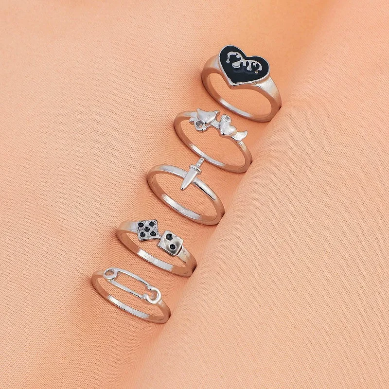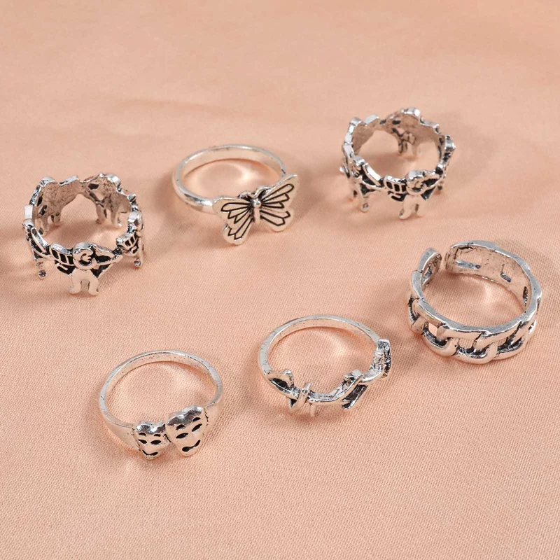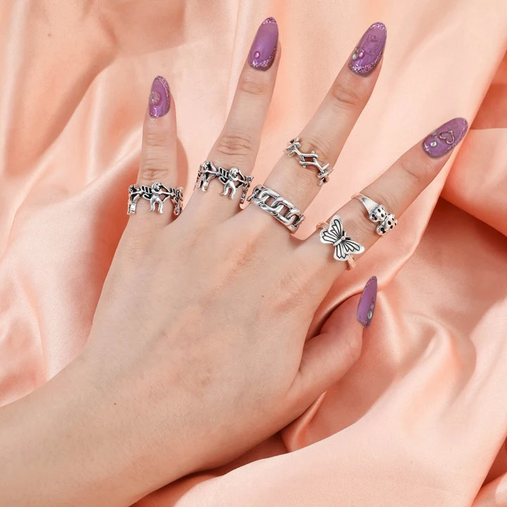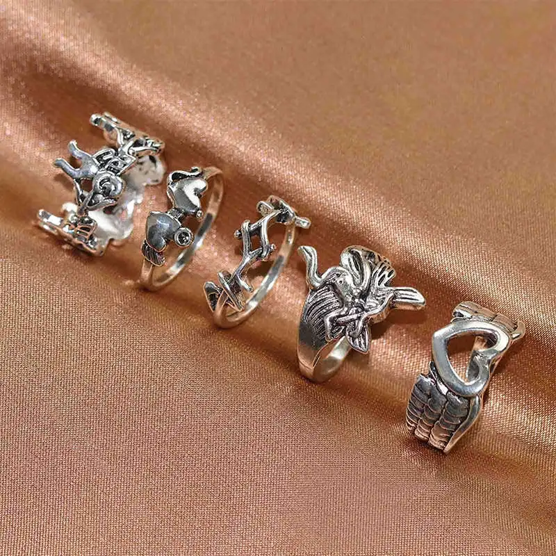 Готический винтажный набор колец с ангелом, бабочкой для женщин, панк, ретро, металлические подвески в виде грибов, кольца на палец, ювелирные изделия, подарок
