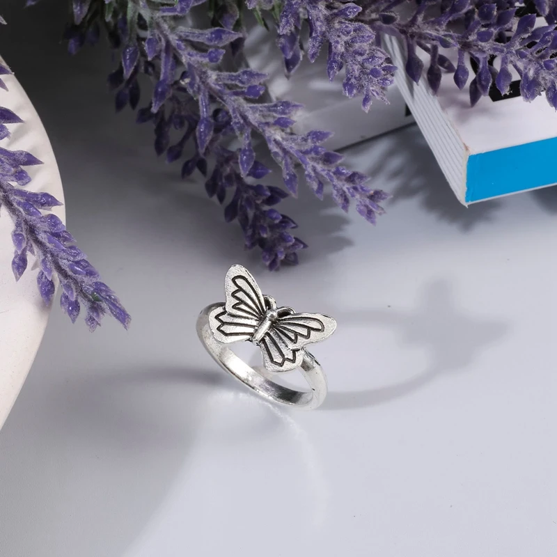 Женское кольцо с бабочкой и сердцем, Винтажное кольцо серебристого ...