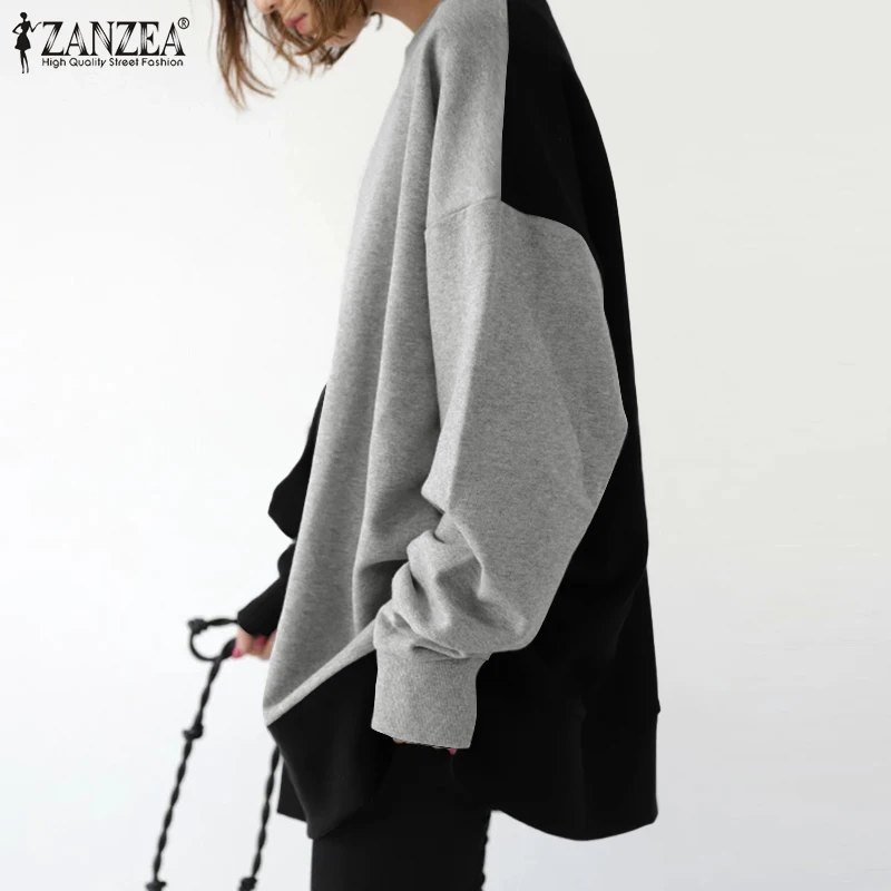 Осенние толстовки 2022 ZANZEA Модные женские повседневные толстовки с длинным рукавом в стиле пэчворк пуловер Свободный свитшот