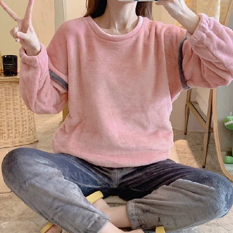 Пижамный комплект из 2 предметов, зимняя утепленная женская одежда ...