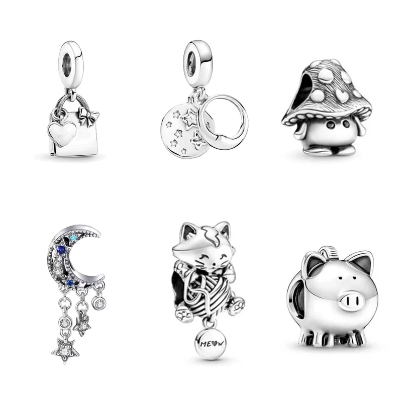 Сумка-тоут с бантом в форме сердца, Очаровательные животные, свинка, гриб, кошка, с шерстяной нитью, Гипсофилы, луна, бусины, подходят для DIY, подвеска, ювелирные изделия, аксессуары