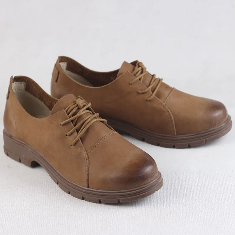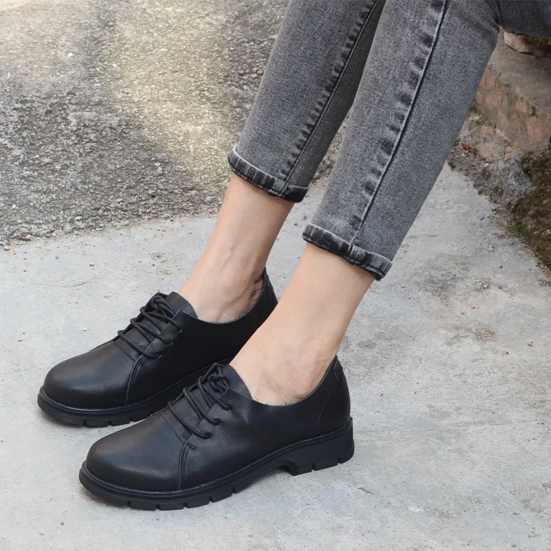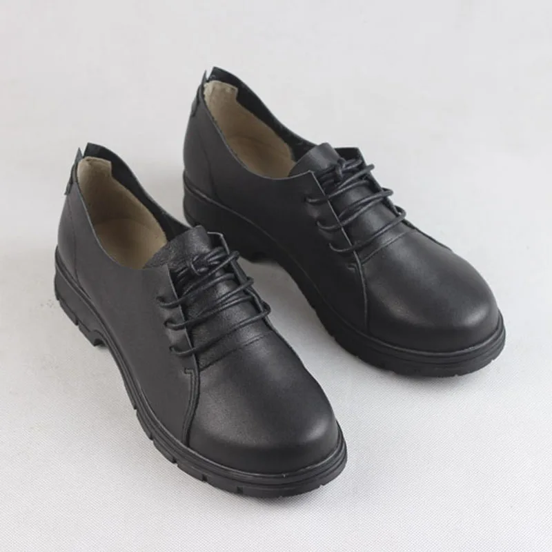Женские туфли на плоской платформе, повседневная обувь из натуральн...