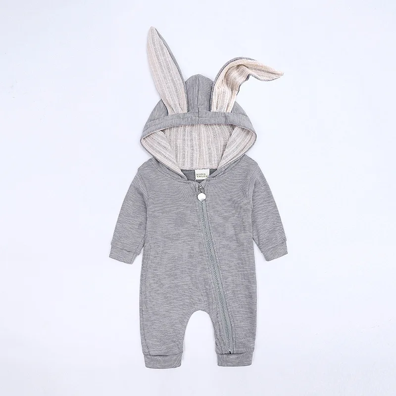 Детский хлопковый комбинезон с капюшоном, с кроличьими ушками