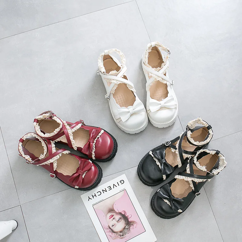 Туфли-униформы JK женские, милая обувь в японском стиле Лолита, Туфли Мэри Джейн, обувь для косплея В Стиле Лолита, на низком каблуке, розовые белые красные