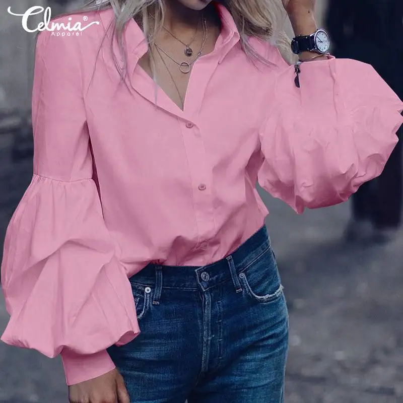 2021 модные рубашки с рукавами-фонариками Celmia, Женская Повседнев...