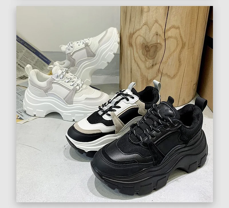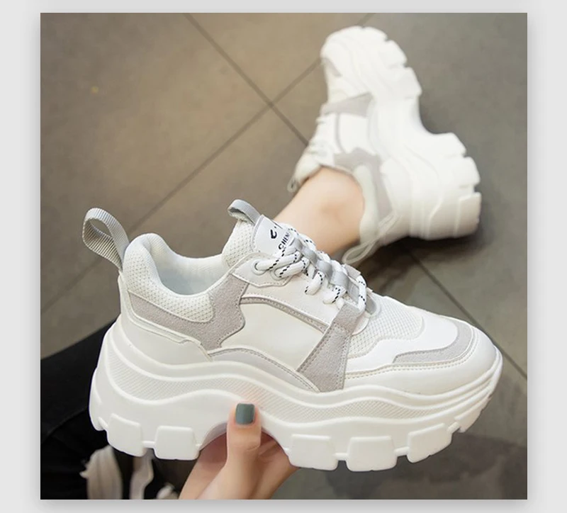 Женские кроссовки на массивной толстой платформе, Вулканизированная подошва, Модные дышащие повседневные женские кроссовки для бега, 2020