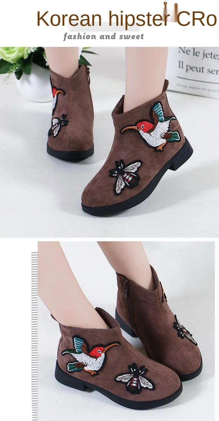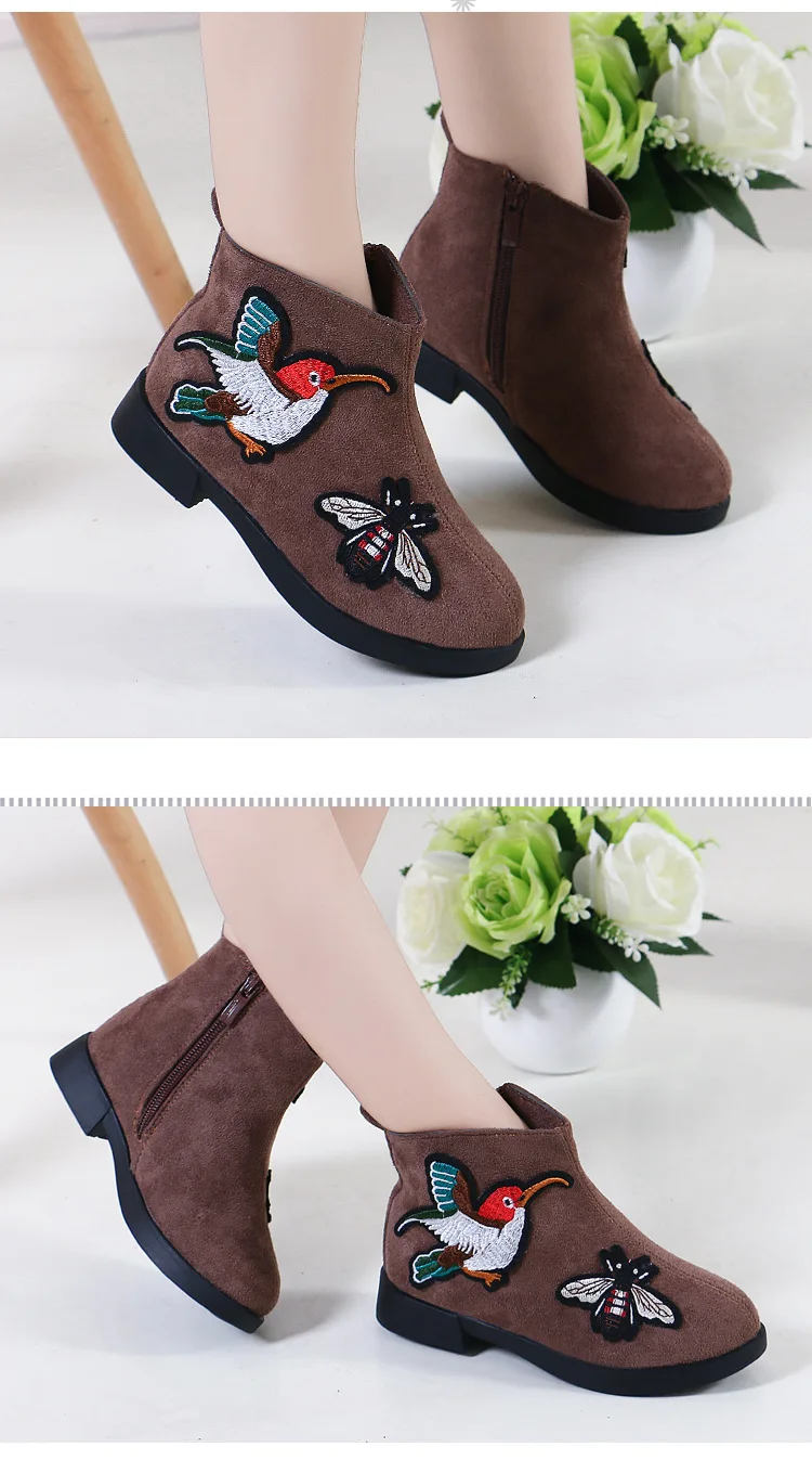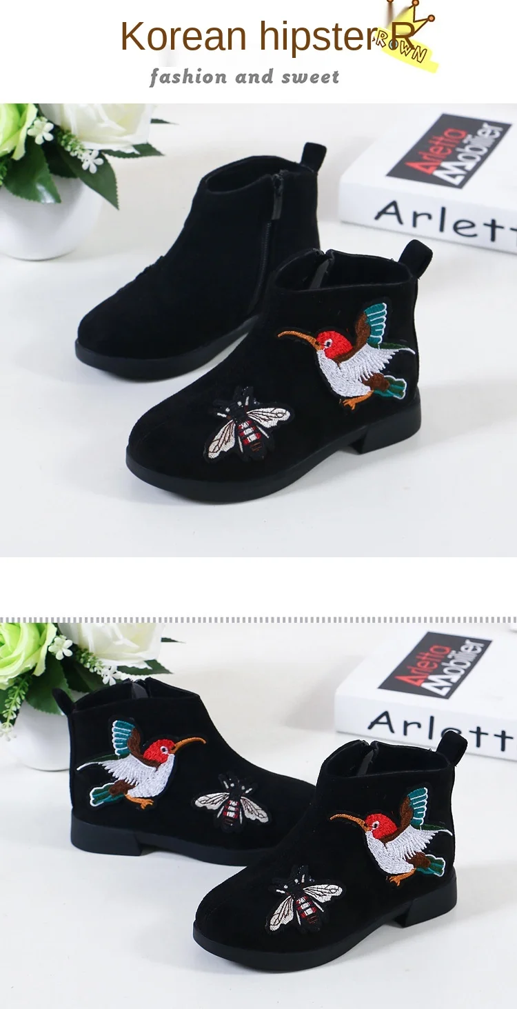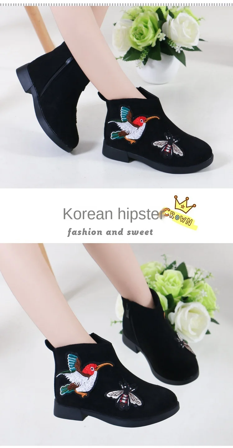 Теплые детские зимние ботинки для детей, новинка, зимняя обувь принцессы с мультяшным рисунком, Нескользящие ботинки на плоской подошве с круглым носком для девочек, милые детские ботинки