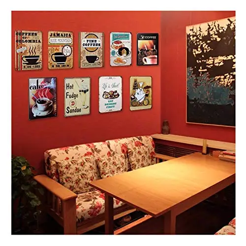 Кофейные напитки латте тема 8x12 дюймов Ретро металлический жестяно...