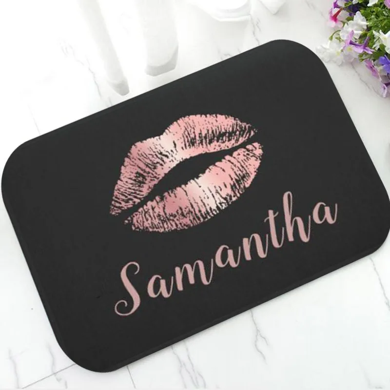 Розовый, красный, с узором в виде губной помады, персонализированный дверной коврик с именем под заказ, коврик для входной двери с губами, ковер, ковер для салона красоты, макияжа, домашний декор