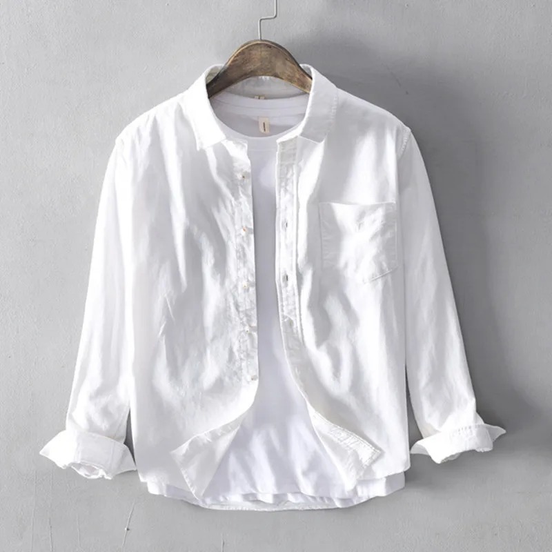 Мужская хлопковая рубашка с длинным рукавом, 6 цветов