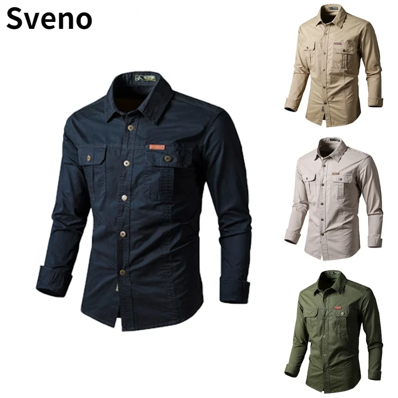 Мужская хлопковая рубашка в стиле милитари, повседневная классическ...