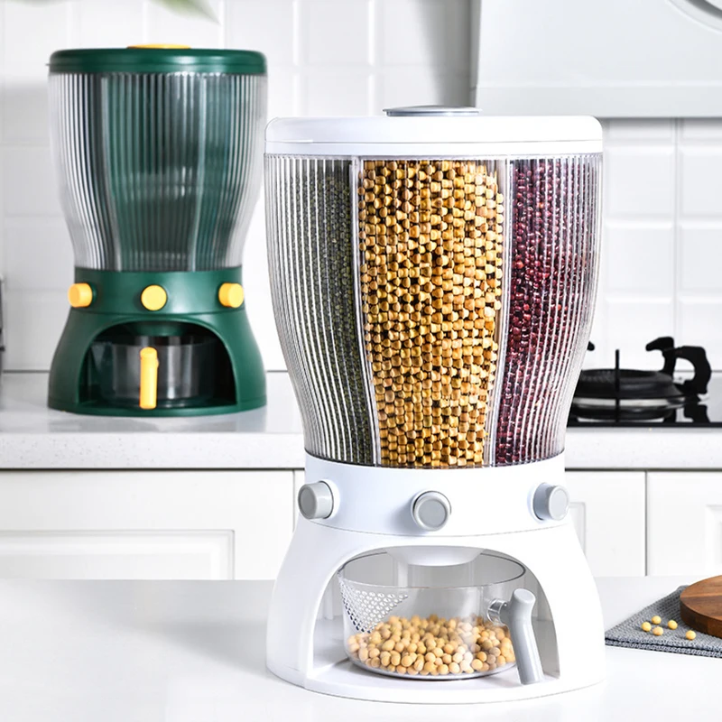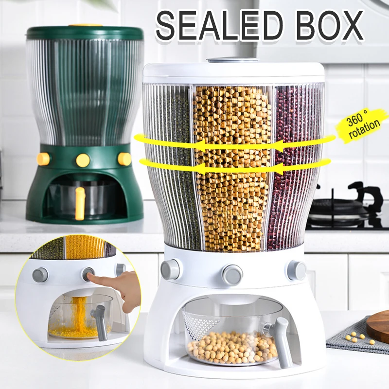 Вращающийся контейнер-дозатор для риса, с измерительным стаканчиком, пресс для раздачи, герметичный Кухонный Контейнер для зерна
