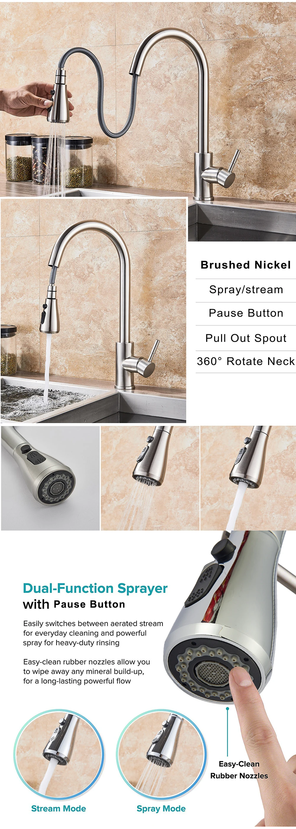 Кухонный смеситель с вытягивающимся смесителем, очень длинная модель, 360 градусов, многофункциональная Одиночная ручка, смеситель для горячей и холодной воды, кухонная раковина.