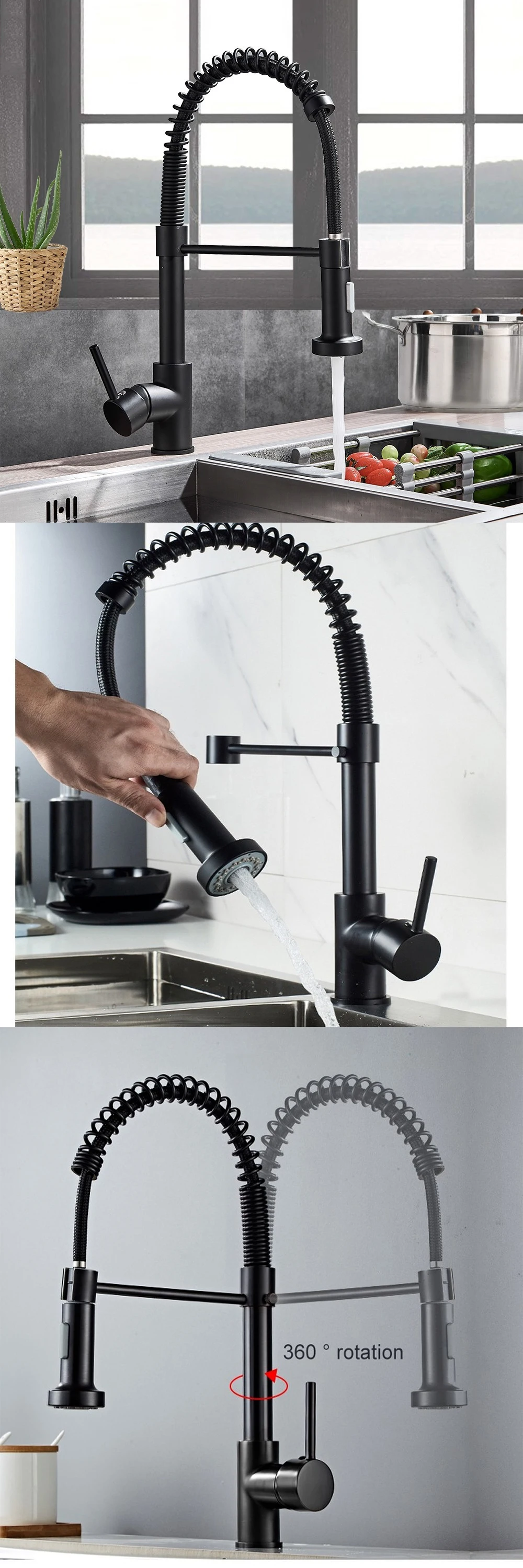При заказе, пожалуйста, обратите внимание на размер водопровода. Если нет специальных инструкций. Мы отправим 1/2 водопровода.Описание товараХарактеристики: Центральный наборОтделка: хром/черныйМонтажные отверстия: одно отверстиеКоличество ручек: одна ручкаЦентр смесителя: одно отверстиеТип клапана: Керамический клапанМатериал корпуса смесителя: латуньМатериал головки распылителя: АБС-пластикМатериал ручки смесителя: цинковый сплавПосылка включает: кран + горячую и холодную трубу + аксессуар для установкиПружинный выдвижной кухонный кран для раковины с одной ручкой смеситель для горячей и холодной воды кран с двойным носиком на бортике