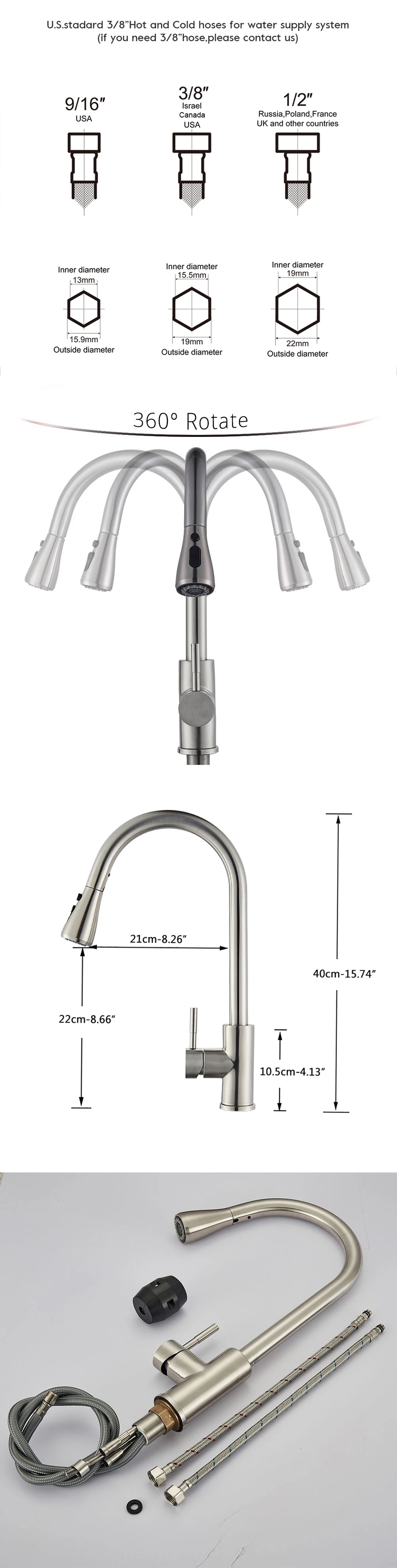 При заказе, пожалуйста, обратите внимание на размер водопровода. Если нет специальных инструкций. Мы отправим 1/2 водопровода.Особенности:Изготовлен из высококачественного материала, прочный, нетоксичный и устойчивый к коррозии.Процесс рисования, гладкая ручка, хорошее ощущение, украсит ваш дом и подарит вам ощущение прикосновения.Однорычажный дизайн для легкого потока и контроля температуры воды. Прочный выдвижной кран для раковины.Выдвижной дизайн, всесторонняя очистка 360 ° приносит вам максимальный опыт, его можно вытянуть, чтобы очистить вашу ванную комнату или кухню, очень удобно.Легко устанавливается, подходит для ванной комнаты и кухни.Характеристики:Название продукта: кухонный выдвижной кранКатушка: керамическая катушкаМатериал: нержавеющая стальДавление: 1 ПаДиафрагма установки: 34 мм-35 ммШланг подачи воды: 60 см плетеный шланг из нержавеющей сталиРазмер: 40 см/15,75 дюймаДополнительный Тип: US/UK/RU/EU/AUКоличество: 1 комплект