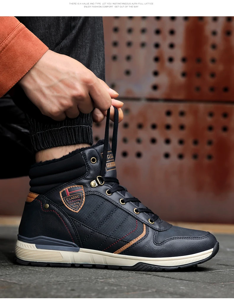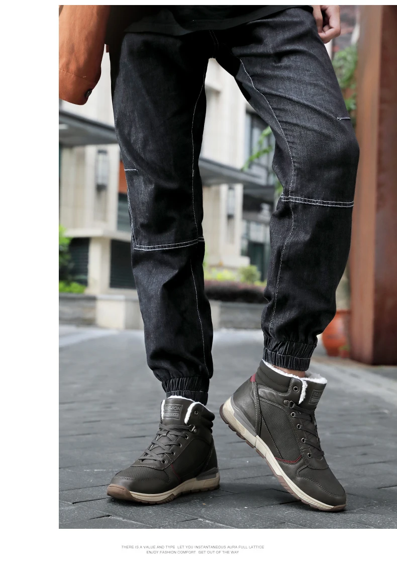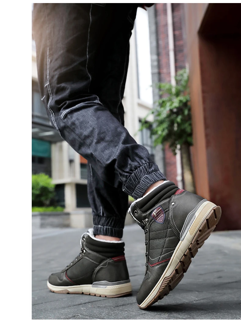 Мужские зимние кожаные ботинки с мехом, супер теплые мужские зимние...