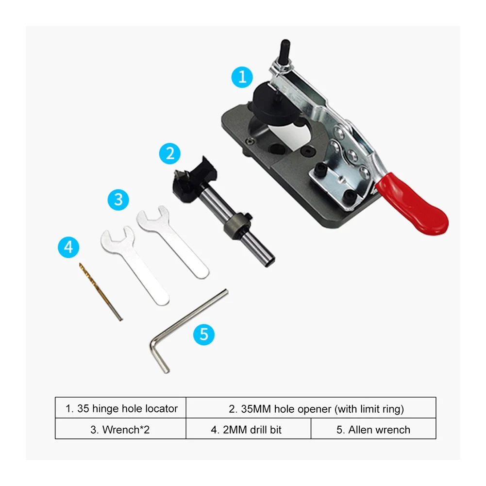 Шарнир 35 мм, локатор для сверления отверстий, набор для установки дверей по дереву с ключом, штамповочный шаблон, зажим для зажима, 6 шт.