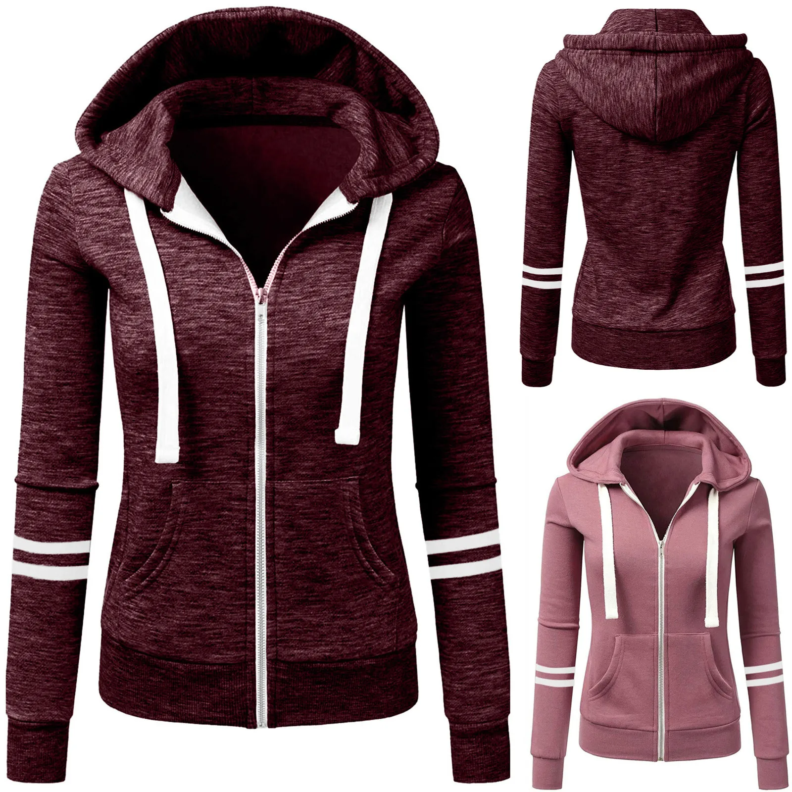 Спортивные Женские однотонные толстовки с длинным рукавом толстовка на молнии с капюшоном Куртка Свободная теплая куртка Топы женское осеннее пальто толстовка