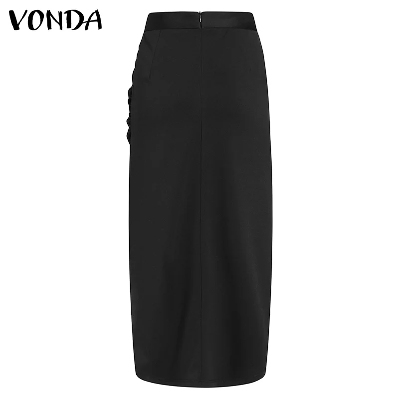 Женские юбки VONDA 2021, длинные юбки для вечеринок, свободные однотонные юбки, Пляжная уличная одежда большого размера с высокой талией