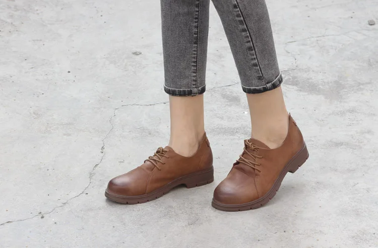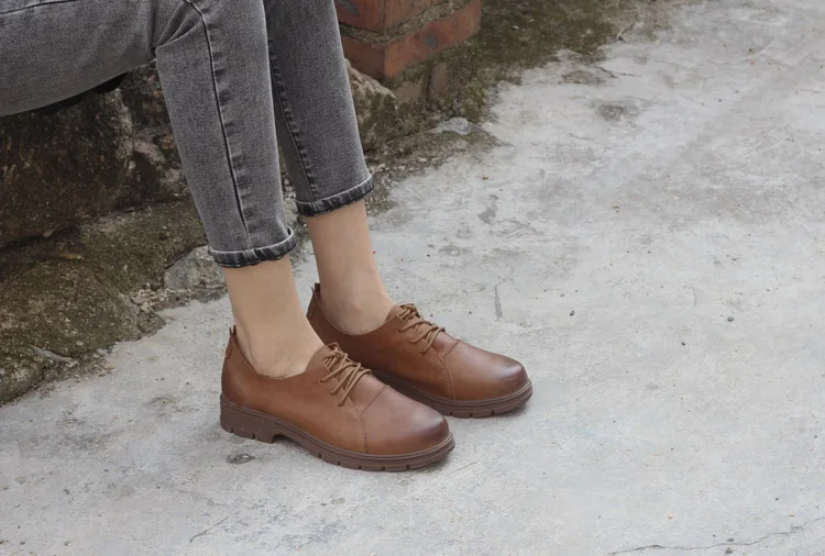 Женские туфли на плоской платформе, повседневная обувь из натуральн...