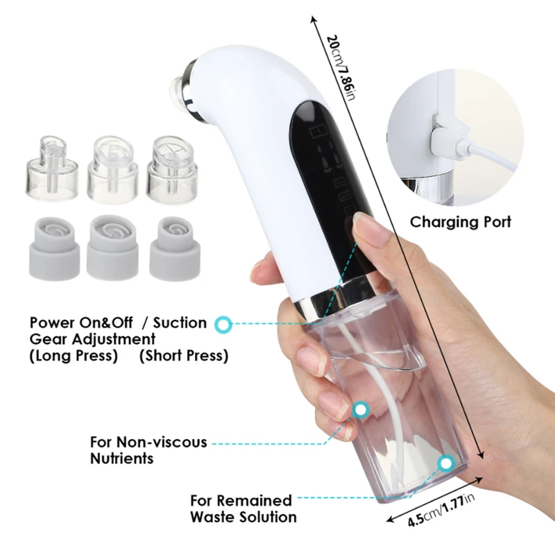 1.[Безопасный и эффективный] используется инновационная усовершенствованная технология вакуумного поглощения для супер сильного всасывания, чтобы легко высасывать черные, белые, омертвевшую кожу, остатки макияжа, прыщи и прыщи, не повреждая вашу кожу, не раздражает и безболезненно избегает побочных эффектов.