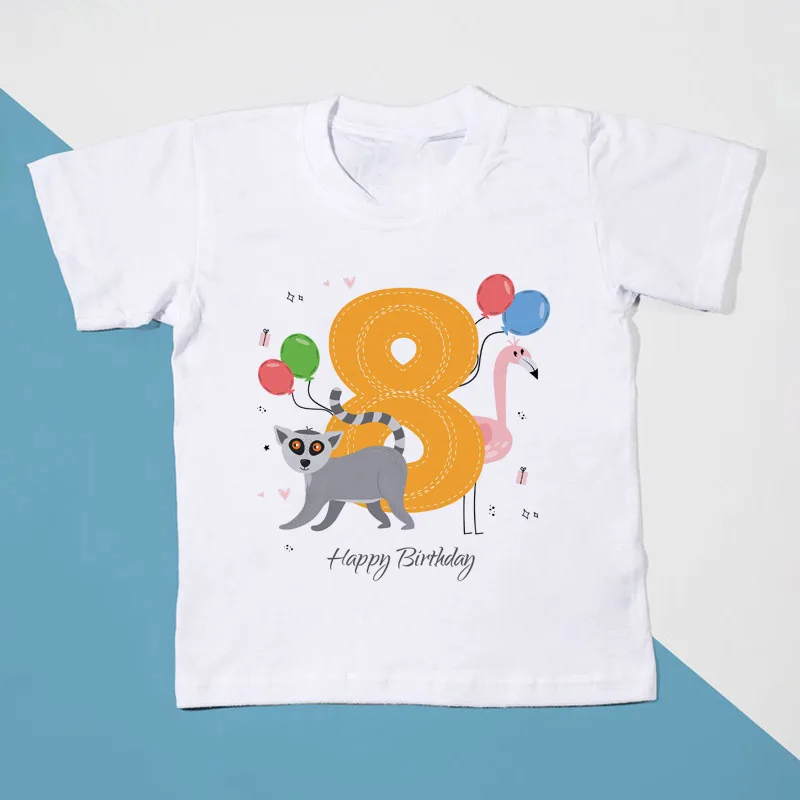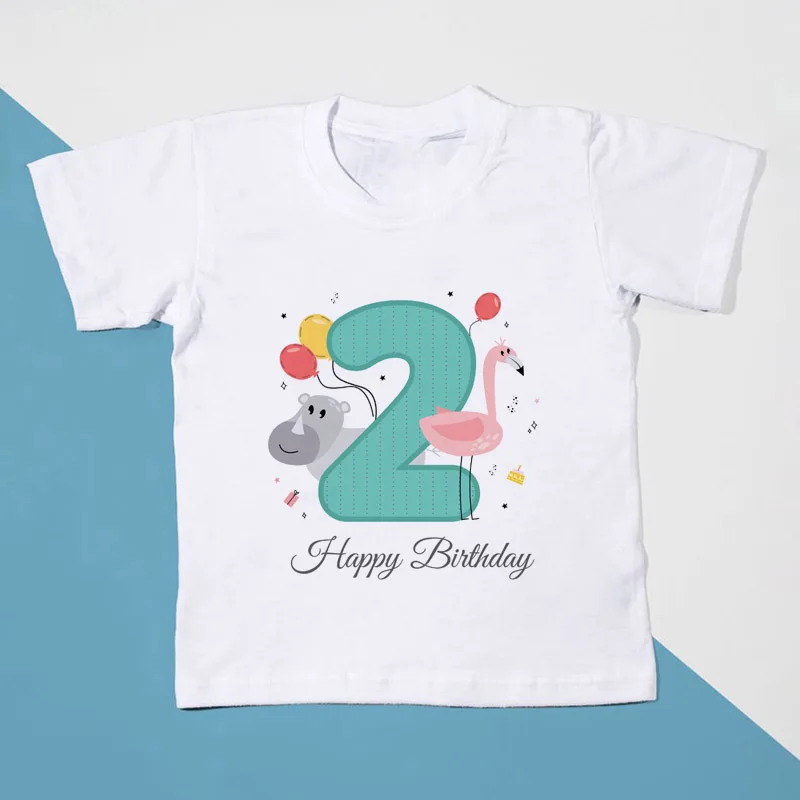 Футболка с изображением животных, подарок на день рождения, с цифрами, детская одежда для мальчиков и девочек, детские топы, милые футболки с короткими рукавами