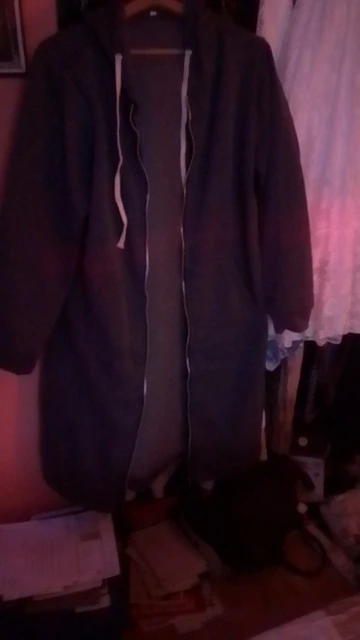 producto igual a la imagen pedi una 3xl peso 87 kg y me queda ancho pero cómodo muy calentico la tela no es gorda es como unpoliester con lanita por dentro el color muy bonito un poco más claro que en la foto queda un poco ancho